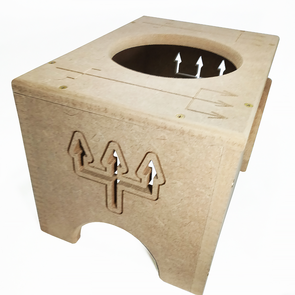 Banco / Suporte p/ Atabaque – modelo Exu com Tridente Incrustado