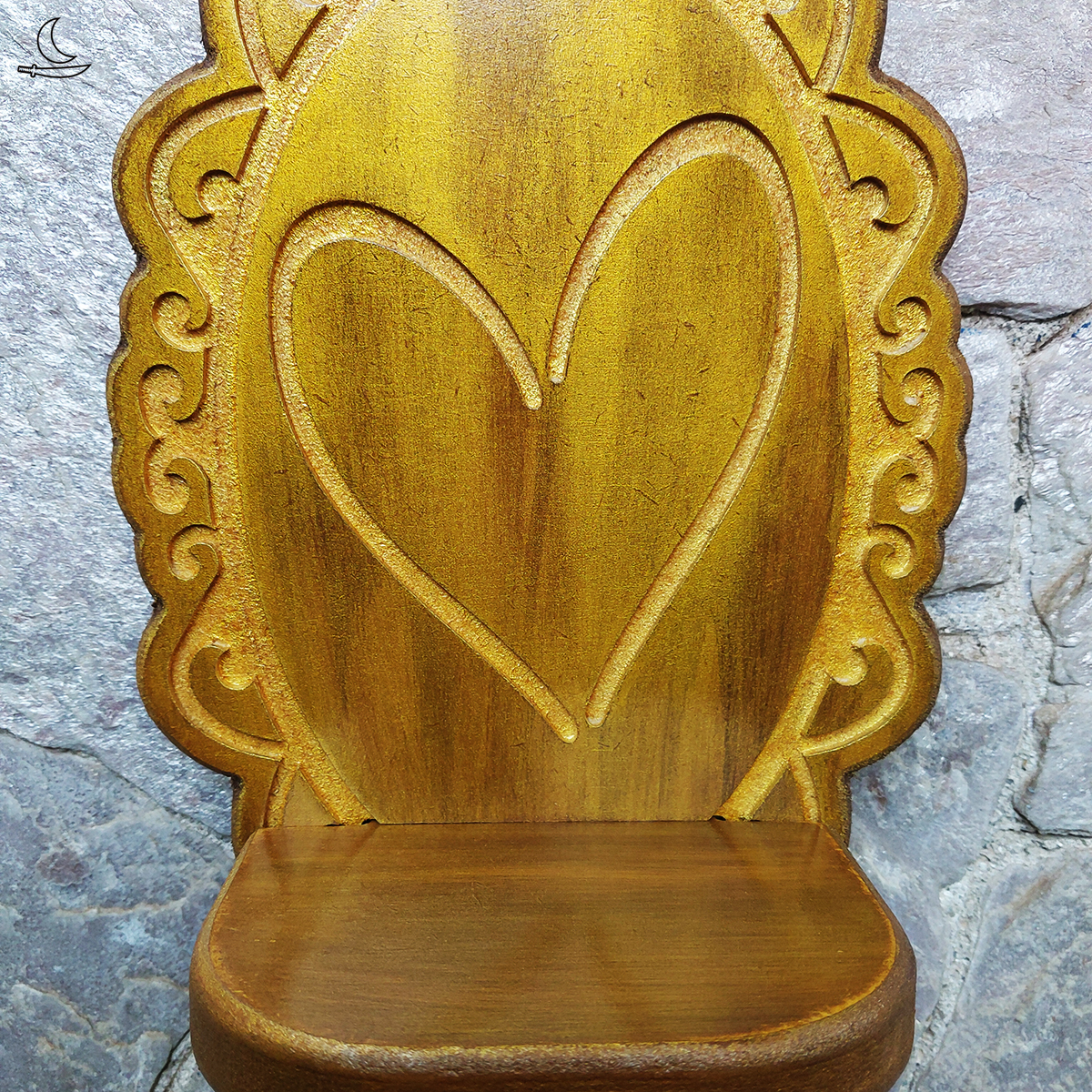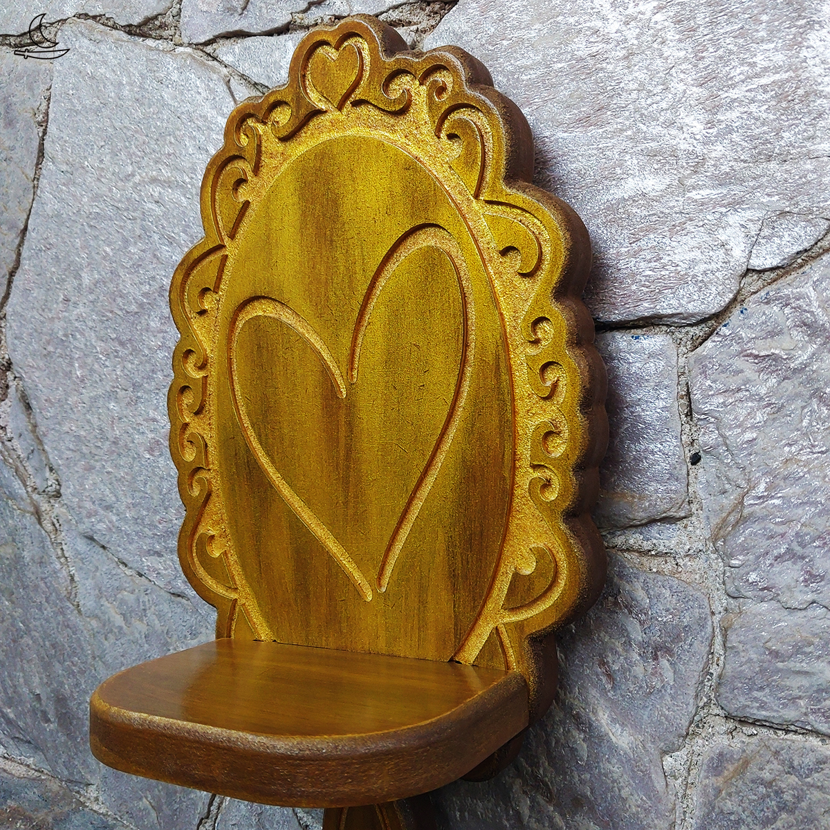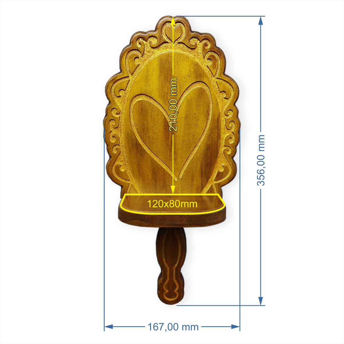 • Pintura artesanal Pátina Ouro Velho com camada de verniz protetor.