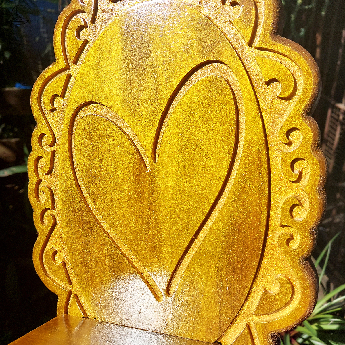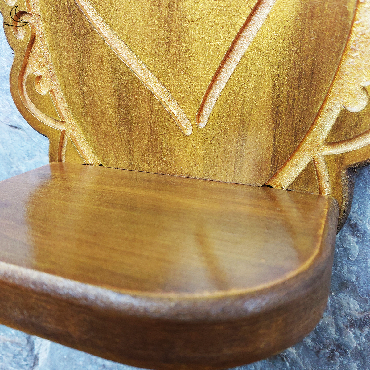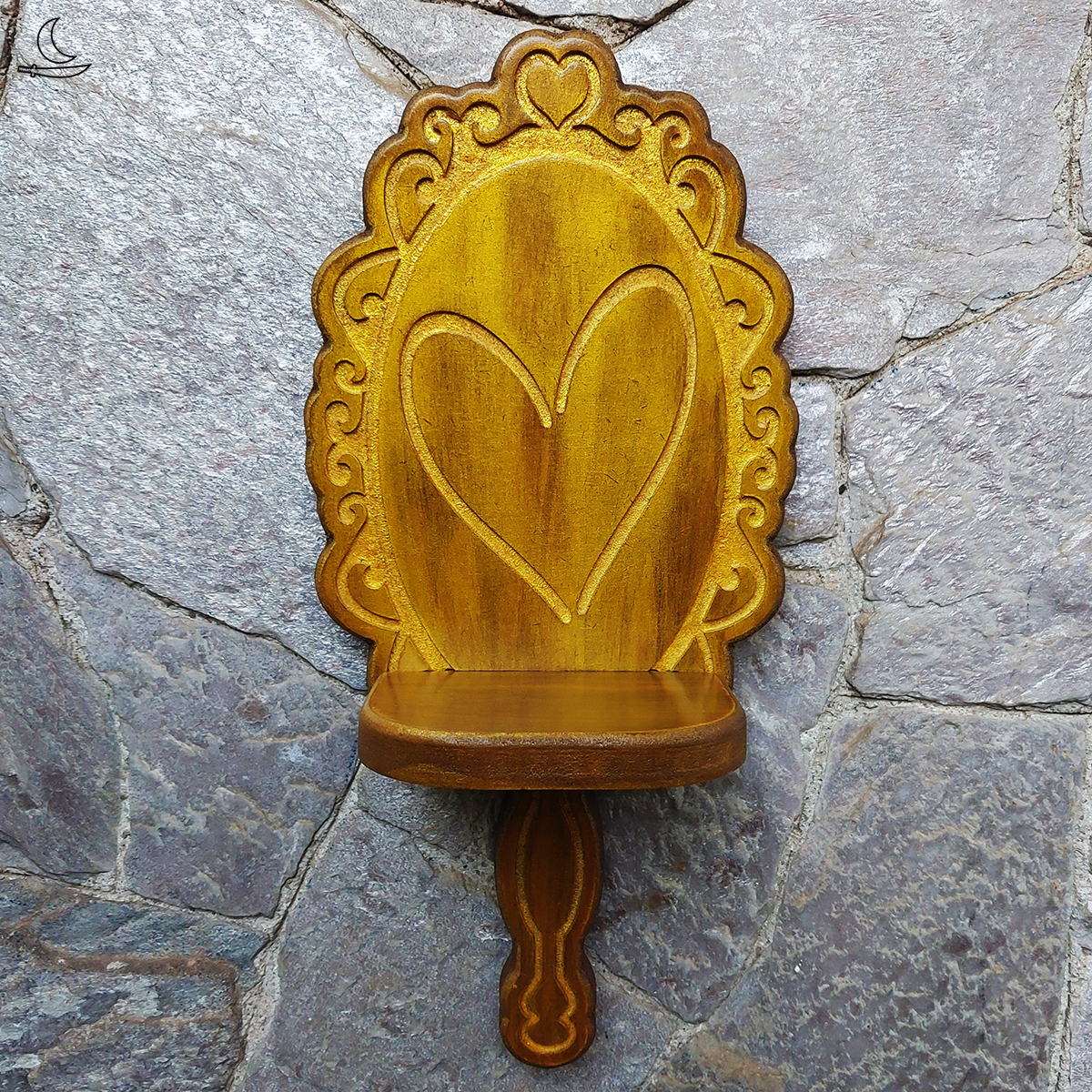 • Pintura artesanal Pátina Ouro Velho com camada de verniz protetor.
